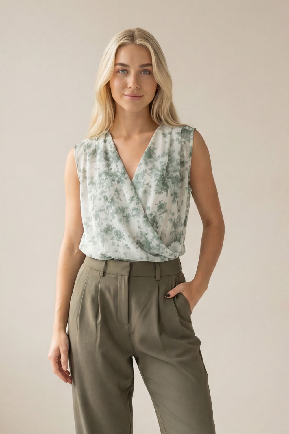 Το Κρουαζέ Floral Αμάνικο Top είναι ένα κομψό και θηλυκό κομμάτι που αναδεικνύει τη σιλουέτα με φυσικό τρόπο. Ο κρουαζέ σχεδιασμός με δέσιμο στο πλάι αγκαλιάζει το σώμα και προσαρμόζεται εύκολα, προσφέροντας άνεση και κομψότητα.