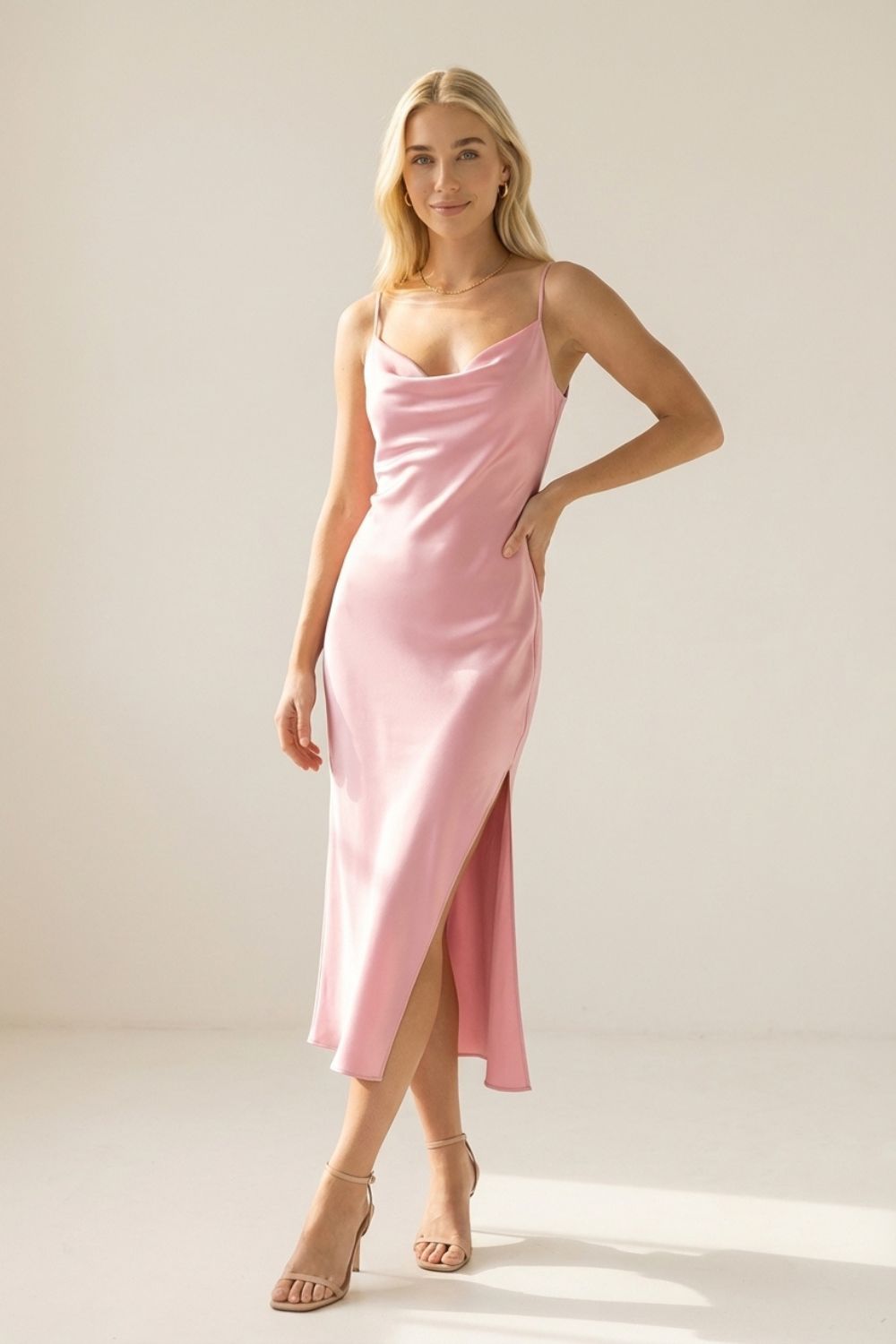 Τα λεπτά ελαστικά ραντάκια και το ντελικάτο ντεκολτέ δημιουργούν ένα minimal αλλά ταυτόχρονα εντυπωσιακό αποτέλεσμα. Το διακριτικό άνοιγμα στο πλάι προσθέτει κίνηση και αισθησιασμό, κάνοντάς το ιδανικό για όλες τις ώρες — από πρωινές εμφανίσεις μέχρι βραδινές εξόδους.