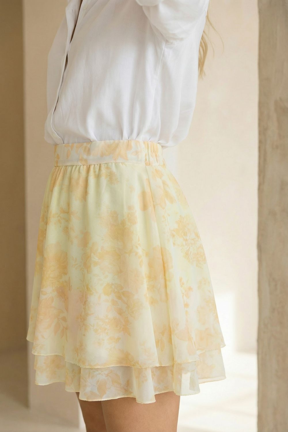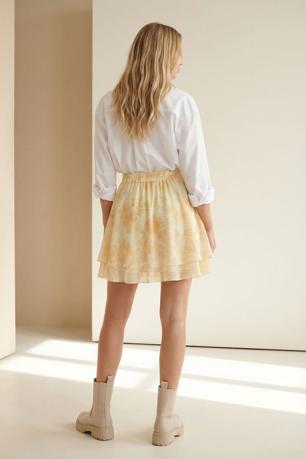Η Floral Print Φούστα σε κίτρινη απόχρωση είναι η ιδανική επιλογή για ρομαντικές και φωτεινές εμφανίσεις. Το crepe sheer ύφασμα χαρίζει αέρινη κίνηση και κομψή ροή στο περπάτημα, ενώ η εσωτερική επένδυση από viscose εξασφαλίζει άνεση και πλήρη κάλυψη χωρίς διαφάνεια.