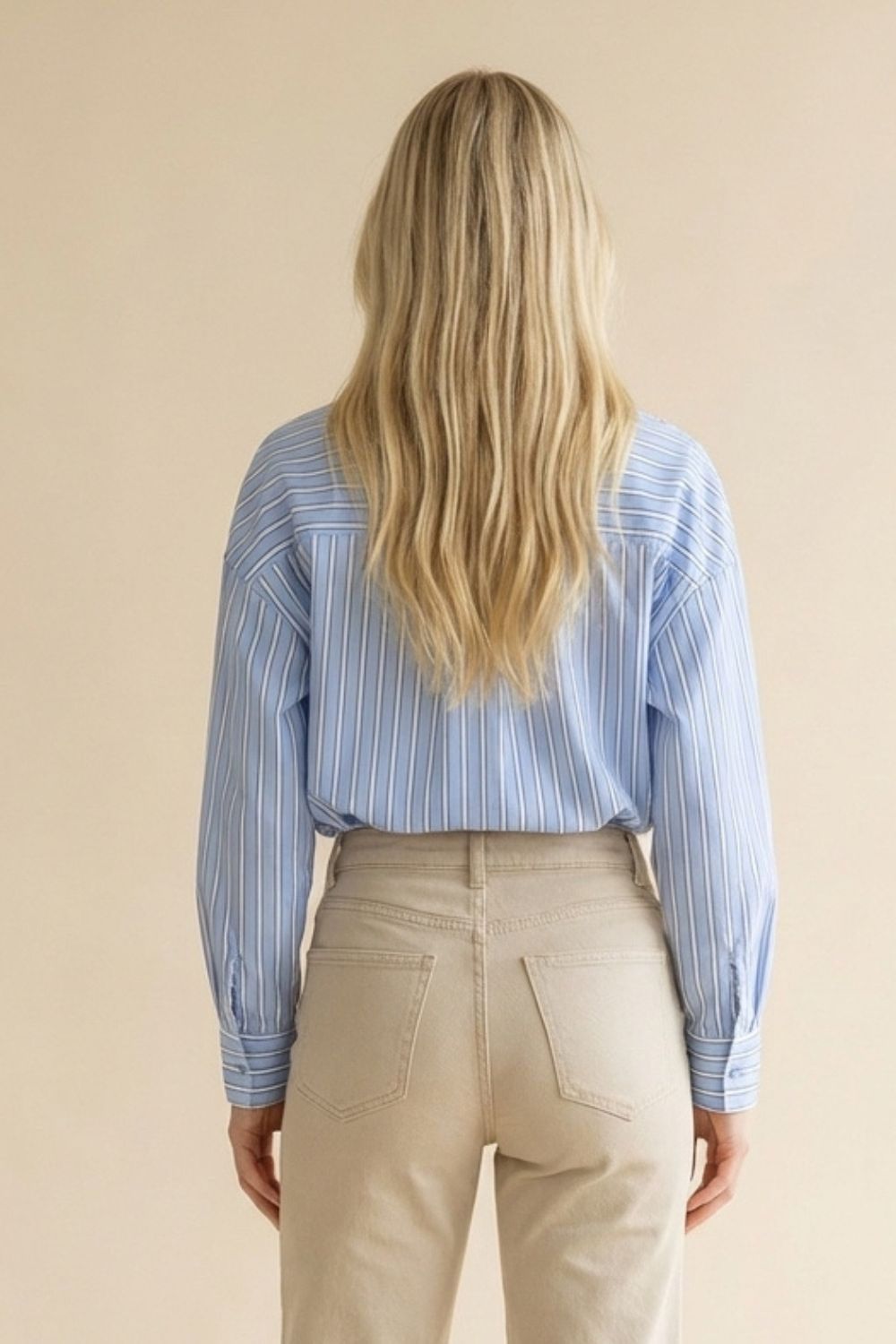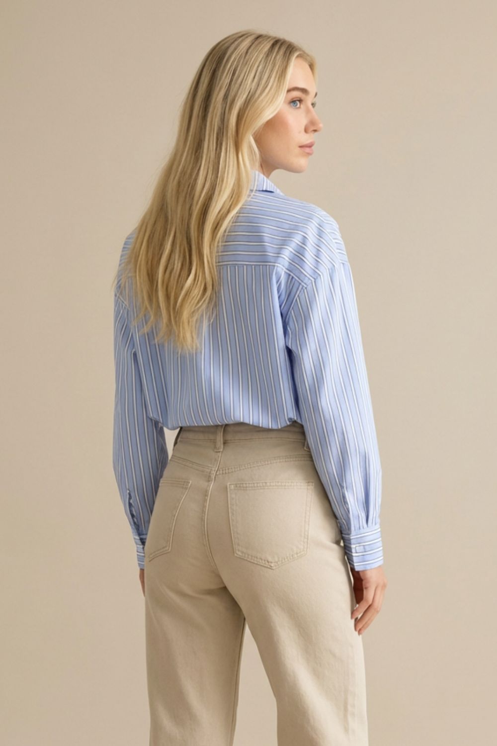 Ένα διαχρονικό ριγέ πουκάμισο που συνδυάζει άνεση και κομψότητα. Το ελαστικό ύφασμα και η χαλαρή γραμμή το κάνουν ιδανικό για καθημερινά αλλά και πιο προσεγμένα looks, ενώ οι κάθετες ρίγες κολακεύουν τη σιλουέτα.