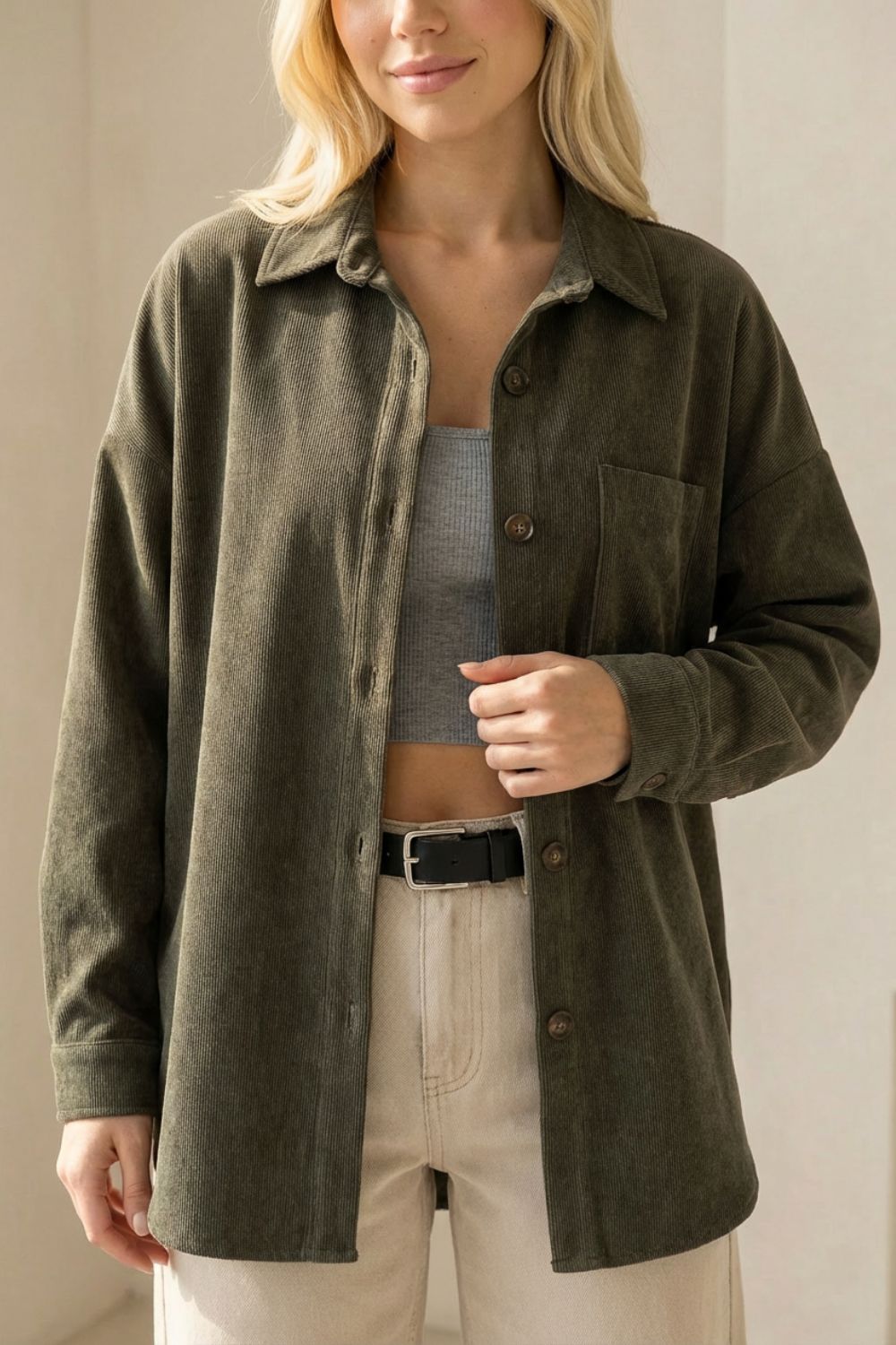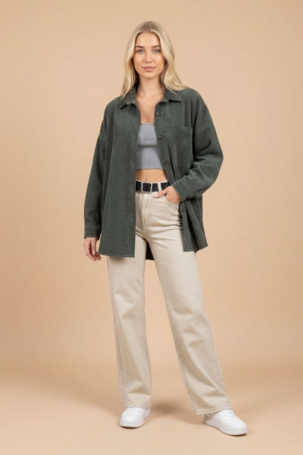 ΤοZen Oversized Κοτλέ Shirt in Khaki είναι η απόλυτη επιλογή για όσους αναζητούν άνεση, στυλ και ευελιξία. Το κομψό του design και η πολυχρηστικότητά του θα το κάνουν αγαπημένο κομμάτι της γκαρνταρόμπας σας.